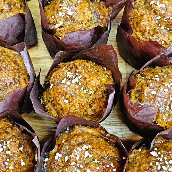 Nasza soczyście zielona słodycz bez zbóż zawierających gluten (Produkt nie jest bezglutenowy, ze względu na zapylenie w piekarni). Składniki : Szpinak/ Pokrzywa, napój owsiany (woda, owies*, olej słonecznikowy, sól, witaminy: D i B12, wapń), mąka ryżowa, woda, jabłko, mąka owsiana, cukier, olej rzepakowy, dżem porzeczkowy (porzeczka, cukier, nasiona chia, rozmaryn) mąka gryczana, budyń( skrobia ziemniaczana, skrobia kukurydziana, ekstrakt wanilii, kurkumina), ocet jabłkowy, proszek do pieczenia bezglutenowy, soda oczyszczona. Masa netto 110 g. UWAGA - zdjęcie poglądowe, przedstawia mniejszą wersję muffinki.