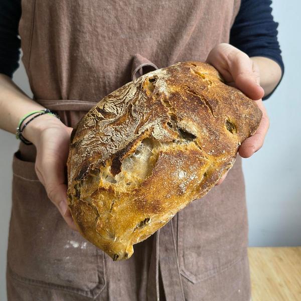 Fermentowany ponad 24h i wyrastający w chłodzie chleb pszenny w formie bochenka, na żytnim zakwasie. Stosunek mąk: 74% pszenna chlebowa, 15% żytnia, 11% pszenna razowa. Składniki: Mąka pszenna*, woda, mąka żytnia*, sól. Masa netto 650g. * - alergeny