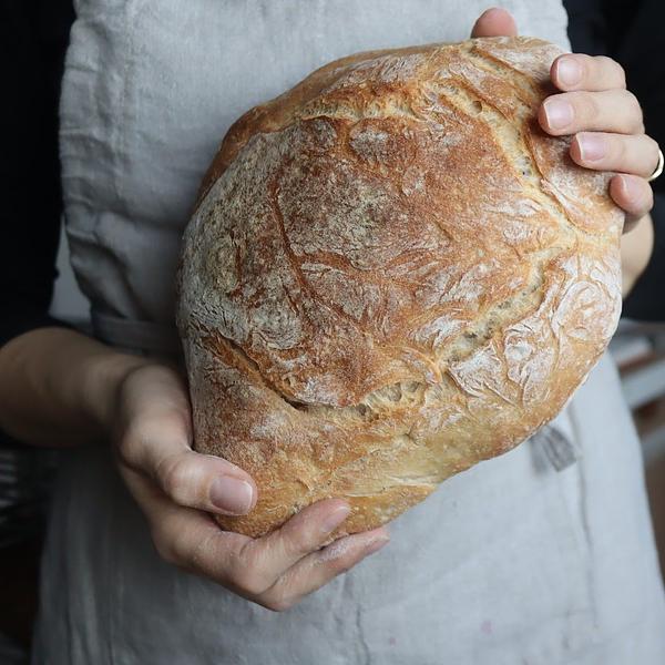 Pszenna, wegańska chałka na zakwasie pszennym i drożdżach. Składniki: Woda, mąka pszenna typ 500*, mąka pszenna typ 750*, zakwas pszenny (mąka pszenna typ 750*, woda), olej rzepakowy, cukier, sól, drożdże, kurkuma. Składniki kruszonki: bułka tarta^, płatki owsiane*, mąka pszenna typ 500*, cukier, olej, woda. Masa netto ok. 400g. * - alergeny ^ - może zawierać pszenicę, żyto, orkisz, wszelkie ziarna (w tym sezam).